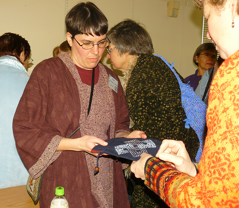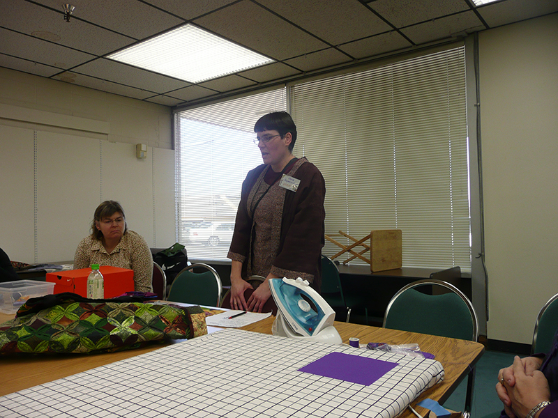 After an interesting discussion of Japanese Textiles at the chapter meeting on February 7, Lara Stepahin Green presented a hands-on workshop which covered her method of creating “Cathedral Windows” quilt patterns.